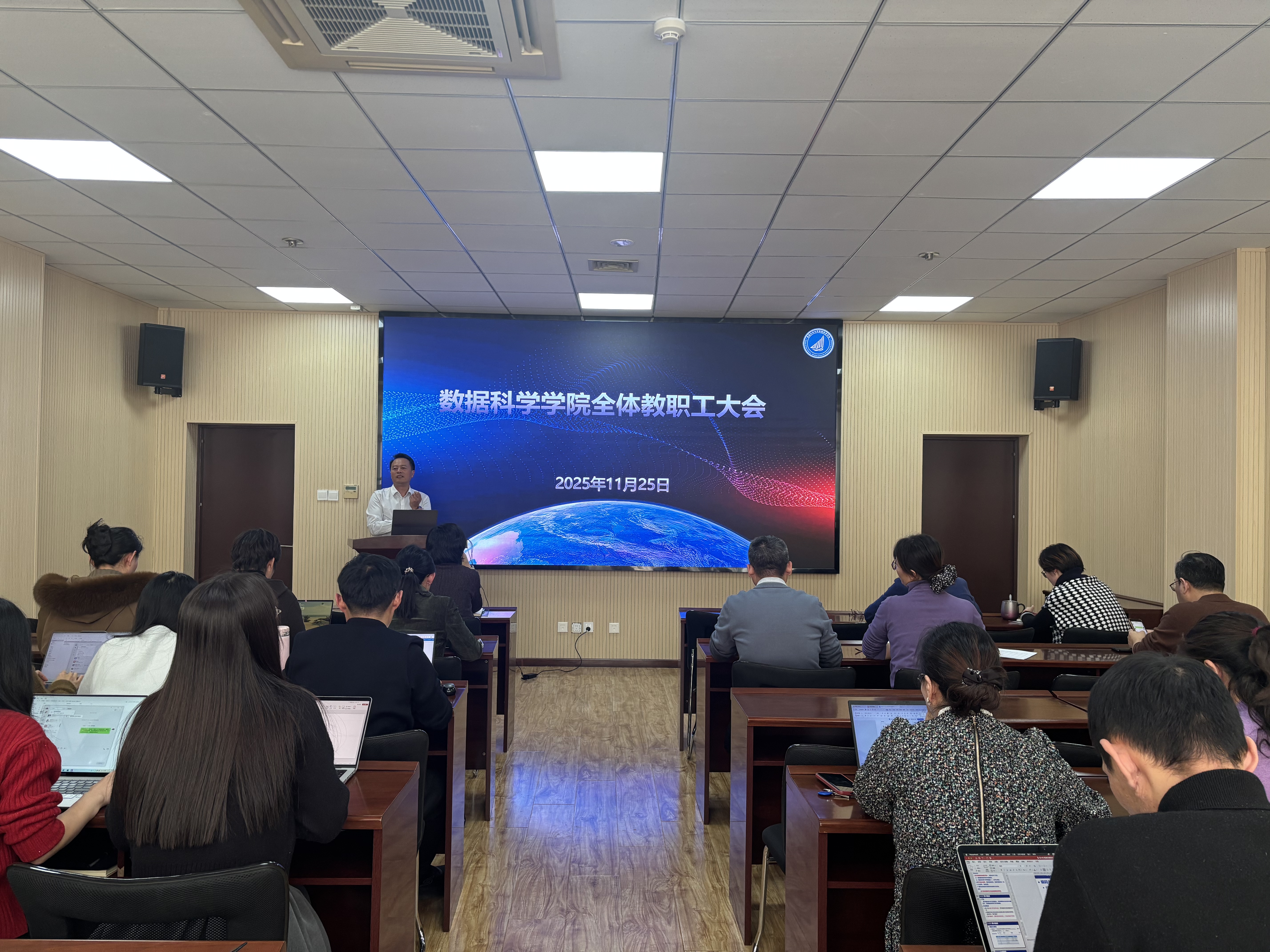 11月25日,2026美加墨世界杯官网召开全体教职工大会,专题学习党的二十届四中全会精神,并就贯彻落实全会精神、推动学院重点工作进行部署。学院常务副院长杜军威在会上作专题解读宣讲。