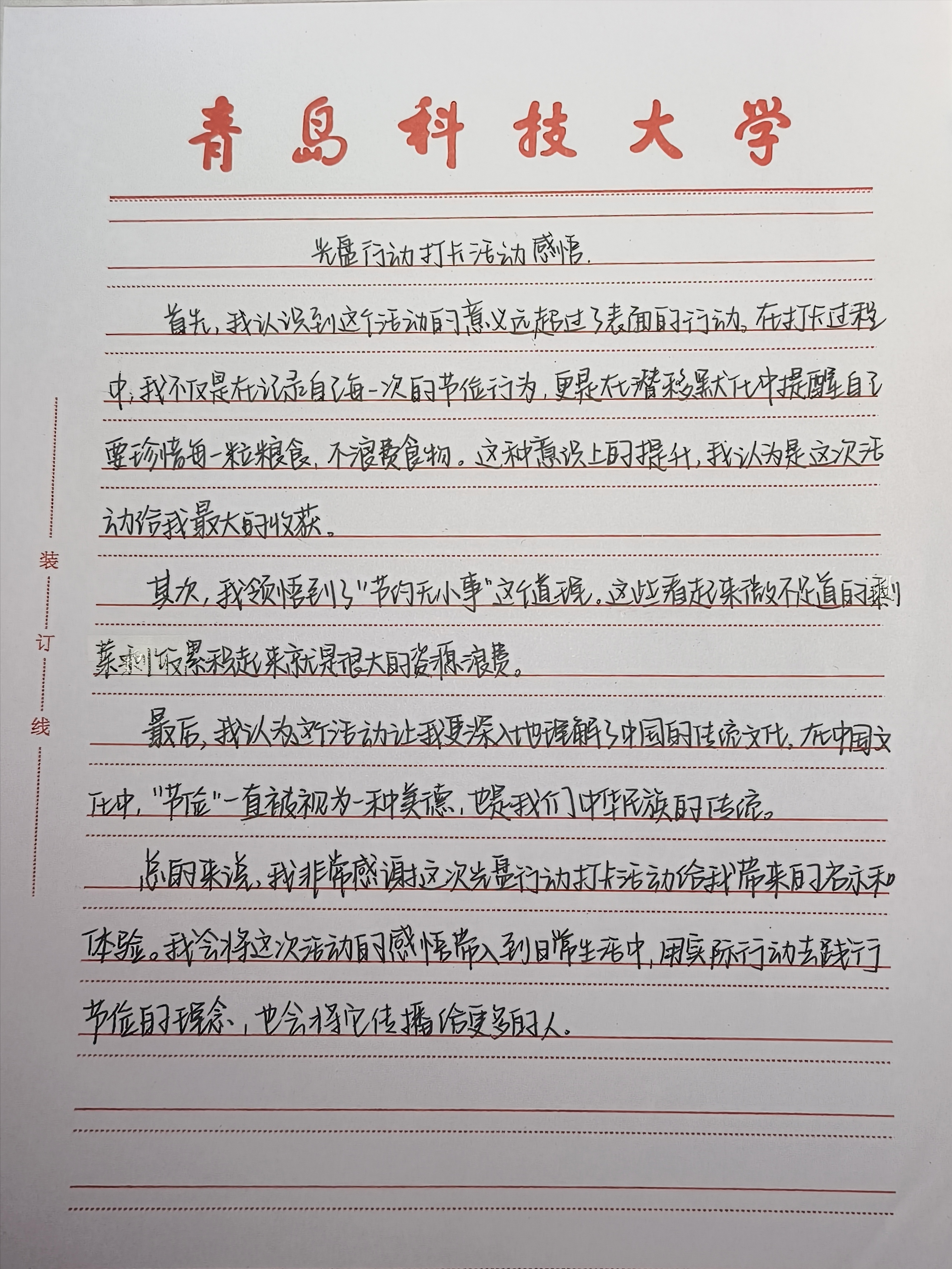 该活动持续一周,旨在鼓励同学们养成珍惜粮食的好习惯,并以此为契机提高全院师生的环保意识和责任感。活动以线下拍照、线上打卡的形式开展,同学们需要在饭后拍摄自己的“光盘”成果并在活动最后一天进行集中打卡。参与活动的同学们纷纷表示,这项活动非常有意义,让他们深刻认识到了粮食的珍贵和浪费的严重性。
