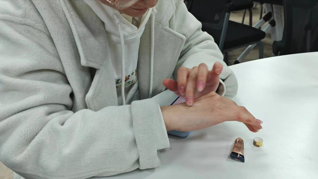 本次课程分为理论学习和课堂实践两部分。在理论学习中,老师系统讲解了化妆品种类、皮肤状况、妆容类型及应用场景等。课堂上,老师邀请同学共同参与授课,演示如何展现不同妆造,分享化妆细节的技巧。