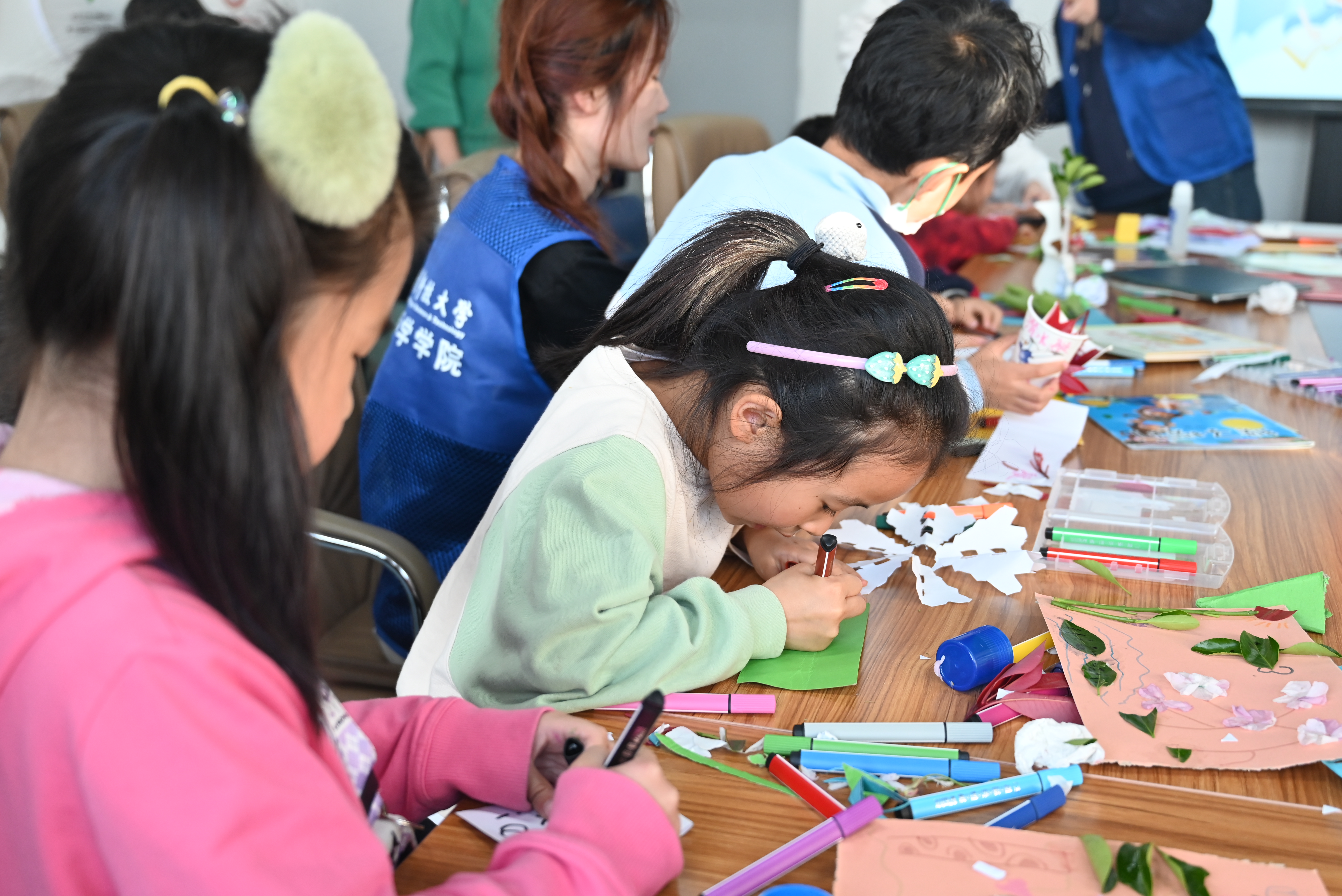 活动自4月11日启动以来,共举办了四期主题不同的伴读课堂。第一期活动以读书和才艺展示为主,志愿者引导小朋友们介绍自己,主动破冰,随后正式开始伴读活动。志愿者们带领着小朋友认真挑选了适合他们年龄段的书籍,通过互动式阅读,角色扮演等形式,让阅读变得有趣,调动了小朋友们的积极性。第二期活动则是以画画为主题,孩子们发挥想象力,用画笔描绘出自己心目中五彩斑斓的书中世界。第三期活动的主题是做手工,孩子们用树叶、花瓣等制作了一张张童趣盎然的书签、简报,以及各式各样充满奇妙想象力的手工艺品,不仅锻炼了动手能力,也提升了审美和创造力。第四期活动回归到读书和讲故事,孩子们在分享自己的故事的同时,也聆听了其他小伙伴的精彩故事,最后,每位参与的孩子都获得了颁发的奖状,以示鼓励。