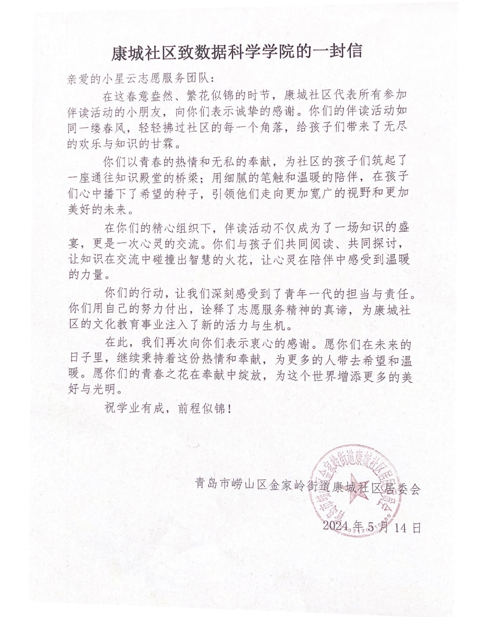 康城社区的工作人员也对“小星云”志愿服务队的到来表示了衷心的感谢。他们认为,志愿者们的辛勤工作不仅丰富了社区的文化生活,也为孩子们提供了一个展示自我、提升自信的平台。社区居民们纷纷表示,期待“小星云”志愿服务队能够继续在社区中开展更多形式多样的教育活动。