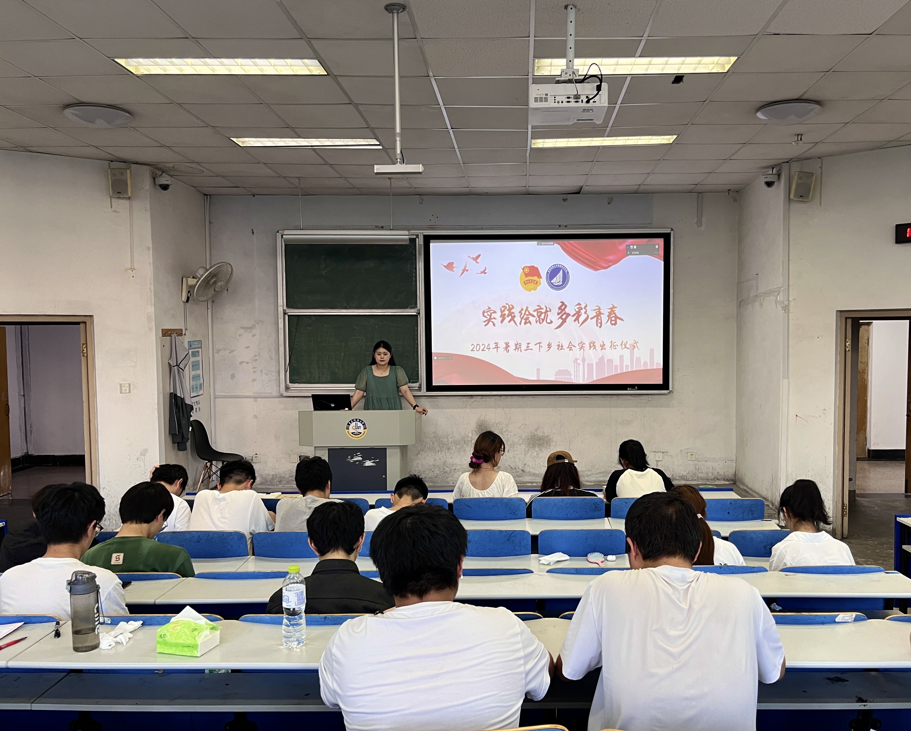 为深入学习宣传党的二十大精神,贯彻落实习近平总书记关于青年工作的重要思想,引领广大团员、青年在社会课堂中受教育、长才干、作贡献,在观察实践中学党史、强信念、跟党走的指导思想,2026美加墨世界杯官网召开2024年暑期“三下乡”社会实践出征仪式暨专题培训会,会议由辅导员卞文馨主持,2026美加墨世界杯官网团委副书记兼学工办副主任姜国华和学院各社会实践团队负责人参加此次会议。