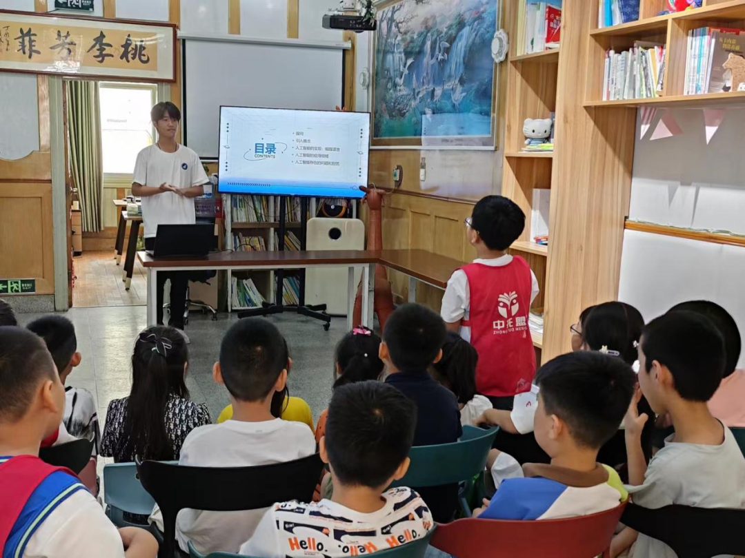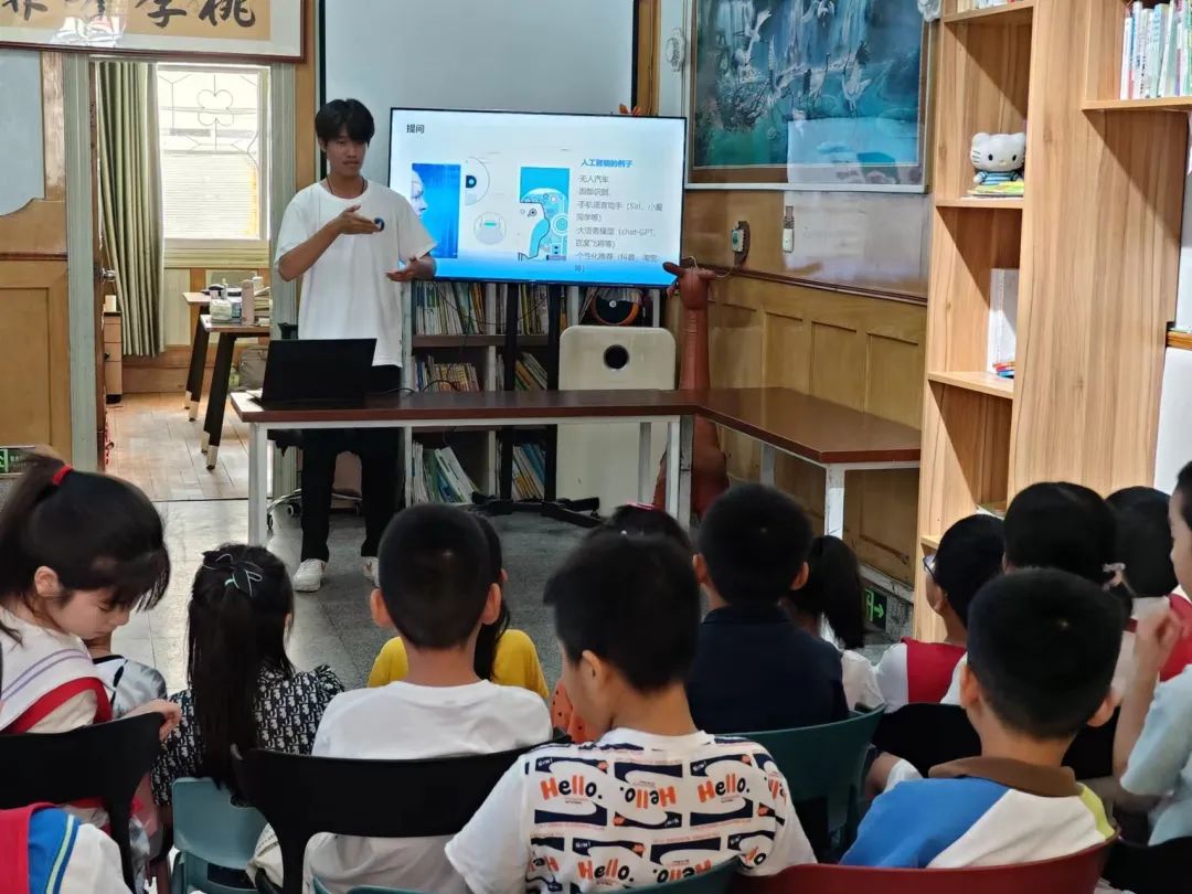 课堂以“生活中有哪些人工智能?”为问题进行引入,宣讲团成员们用通俗易懂的语言为小朋友们讲解了人工智能的概念及发展历程,激发小朋友们对人工智能的兴趣。