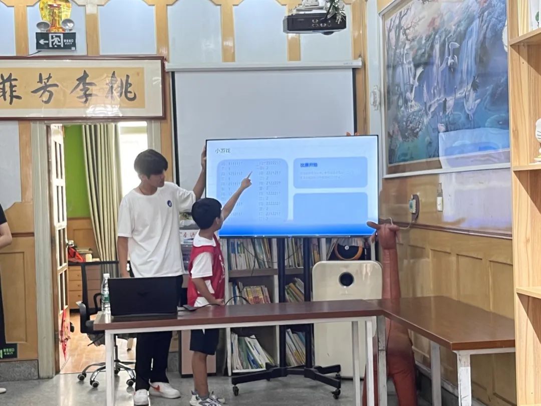 随后,宣讲团通过视频讲解和抢答互动环节,带小朋友们感受了机器语言的魅力,并利用Scratch少儿编程软件,引导小朋友们通过拖放编程积木来创建简单的动画和游戏。在帮助小朋友们理解编程逻辑的同时,激发他们的动手能力和创造力。