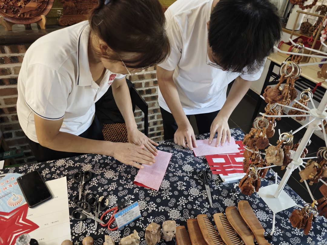团队成员共同参观了当地的非物质文化遗产博物馆,进行了面塑、剪纸和拓片的制作体验,通过实地考察、文化体验等形式,深入了解五埠岭丰富的非物质文化遗产及其传承现状,自觉在躬身实践中传承和弘扬中华优秀传统文化,在行走与体验中感悟非遗培根铸魂的魅力,在学深悟透中践行新时代文化使命的责任担当。