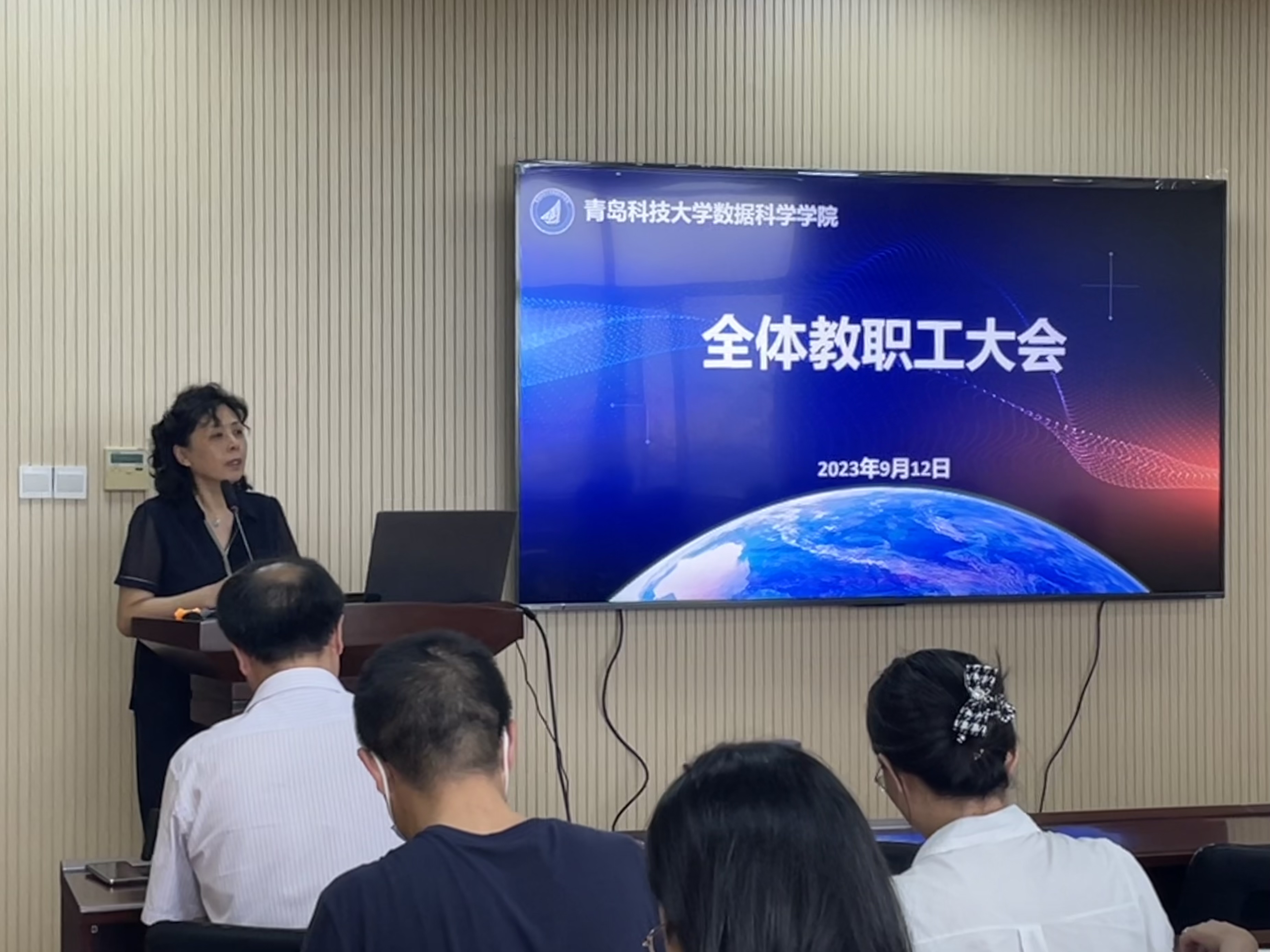 9月12日下午,2026美加墨世界杯官网在图书馆A区4008召开全体教职工大会。党总支书记官杰主持会议。