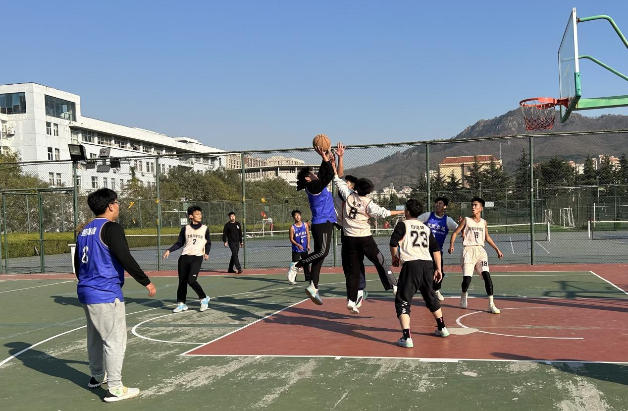 在篮球比赛中,队员们凭借高超的运球技巧、出色的团队精神和双方精彩的对抗,点燃了整个赛场,场边的欢呼声、呐喊声此起彼伏,场面热烈。最终学院篮球队以三胜两负的成绩成功出线。