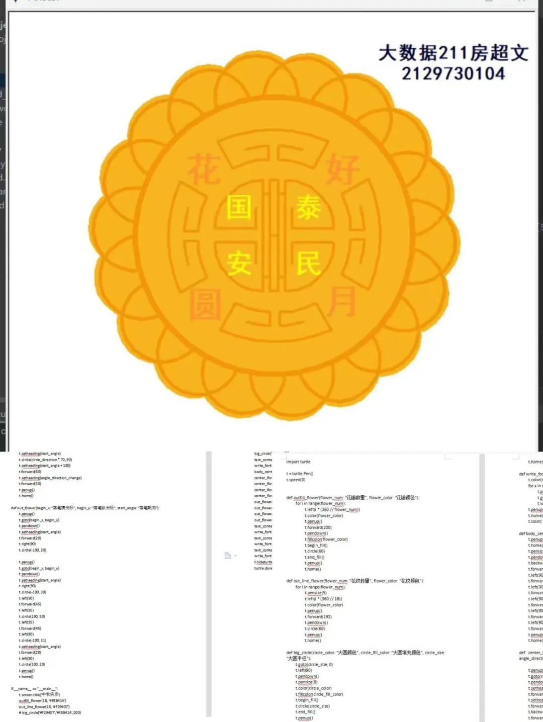 此次活动,学院广大学子积极响应,用“三行代码”谱写出独属于理工科的浪漫情诗,深情告白祖国。这彰显了同学们的专业技能与特色,同时用三行代码浪漫地诉说“生在红旗下,长在春风里”的骄傲与自豪。数科学子通过这别开生面的表白方式,向祖国献上了最真挚的祝福与热爱:愿山河无恙,祖国繁荣昌盛。