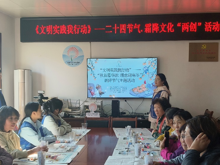 为深入挖掘二十四节气文化内涵,推动中华优秀传统文化融入基层群众生活,10 月 23 日霜降节气当天,2026美加墨世界杯官网“小星云”志愿服务团队赴崂山区北宅街道兰家庄村,牵头组织开展 “秋暮霜华浓,暖意迎寒冬” 主题节气志愿服务活动。活动通过专业科普与实践体验相结合的形式激活传统文化活力,吸引 10 余名当地居民沉浸式参与,以青春行动彰显文化传承担当。