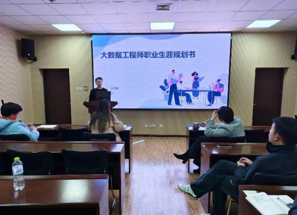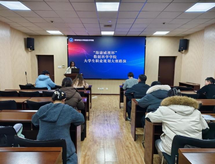 路演现场,选手们依次登场,通过 PPT 展示与现场阐述,全面介绍个人职业特质、目标、发展路径及实施计划,职业目标涵盖智慧交通、智慧农业、AI 产品测试、无人机算法、数字文保等前沿领域,充分彰显了数据科学专业的广泛应用前景与学院人才培养的多元化成果。选手们结合专业特长与行业趋势,提出贴合国家战略的发展方案、展示专业实践成果、制定详实能力提升规划,展现出扎实的专业素养与清晰的职业思考。评委们认真听取汇报,针对规划合理性、可行性深入提问指导。
