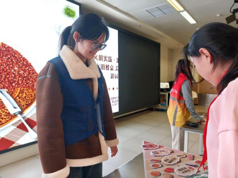 本次游园会紧扣文明用餐核心,精心设置六大特色互动环节,将礼仪知识、营养常识与环保理念融入趣味体验,吸引同学们踊跃参与。其中,餐前礼仪净手静心环节,志愿者细致讲解餐前洗手规范与餐桌礼仪要点,通过情景问答引导学生深刻理解尊老爱幼、文明就餐的行为准则;膳食宝塔巧手拼搭环节中,同学们在食物分类拼搭实践中系统学习均衡膳食知识,进一步深化对合理饮食的认知;餐后分达人环节聚焦垃圾分类重点,志愿者现场开展分类知识科普,结合实物投放实操帮助学生熟练掌握环保技能;公筷行动精准投递环节创新采用趣味夹取游戏形式,让同学们在动手体验中直观领悟公筷公勺使用的卫生意义,切实传递健康用餐理念。此外,光盘宣言你我同行环节通过签名承诺、分享节约妙招等多样形式,持续强化学生珍惜粮食、反对浪费的责任意识,推动文明用餐理念真正落地生根。