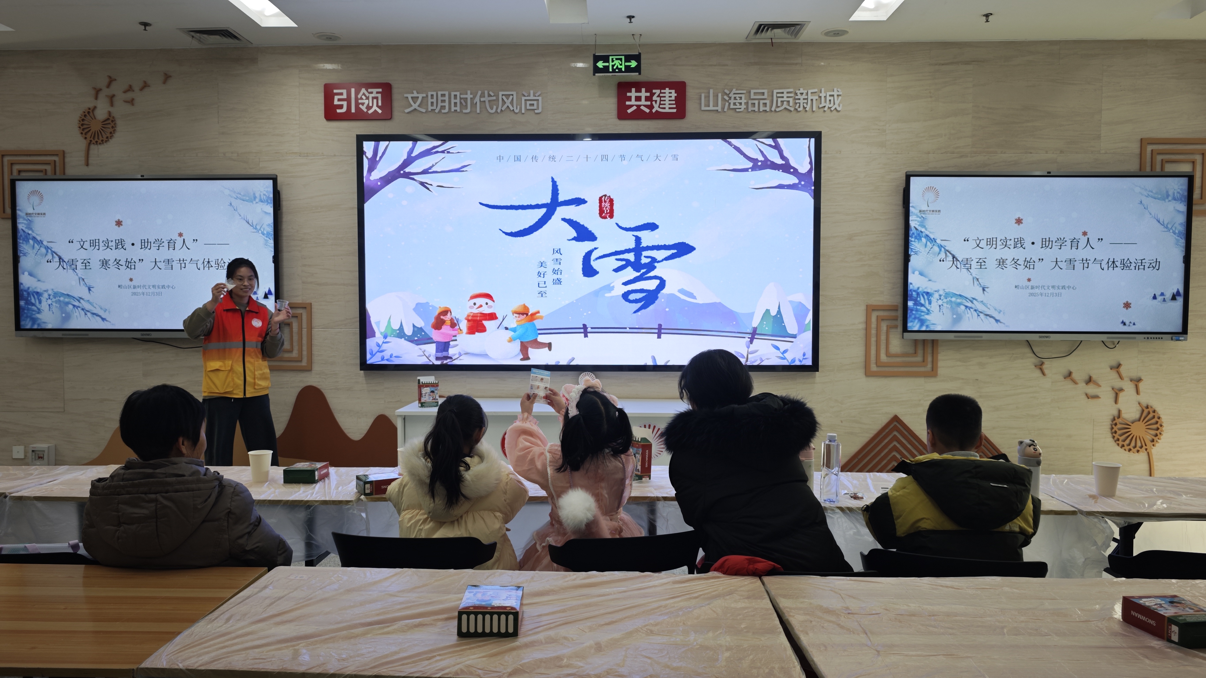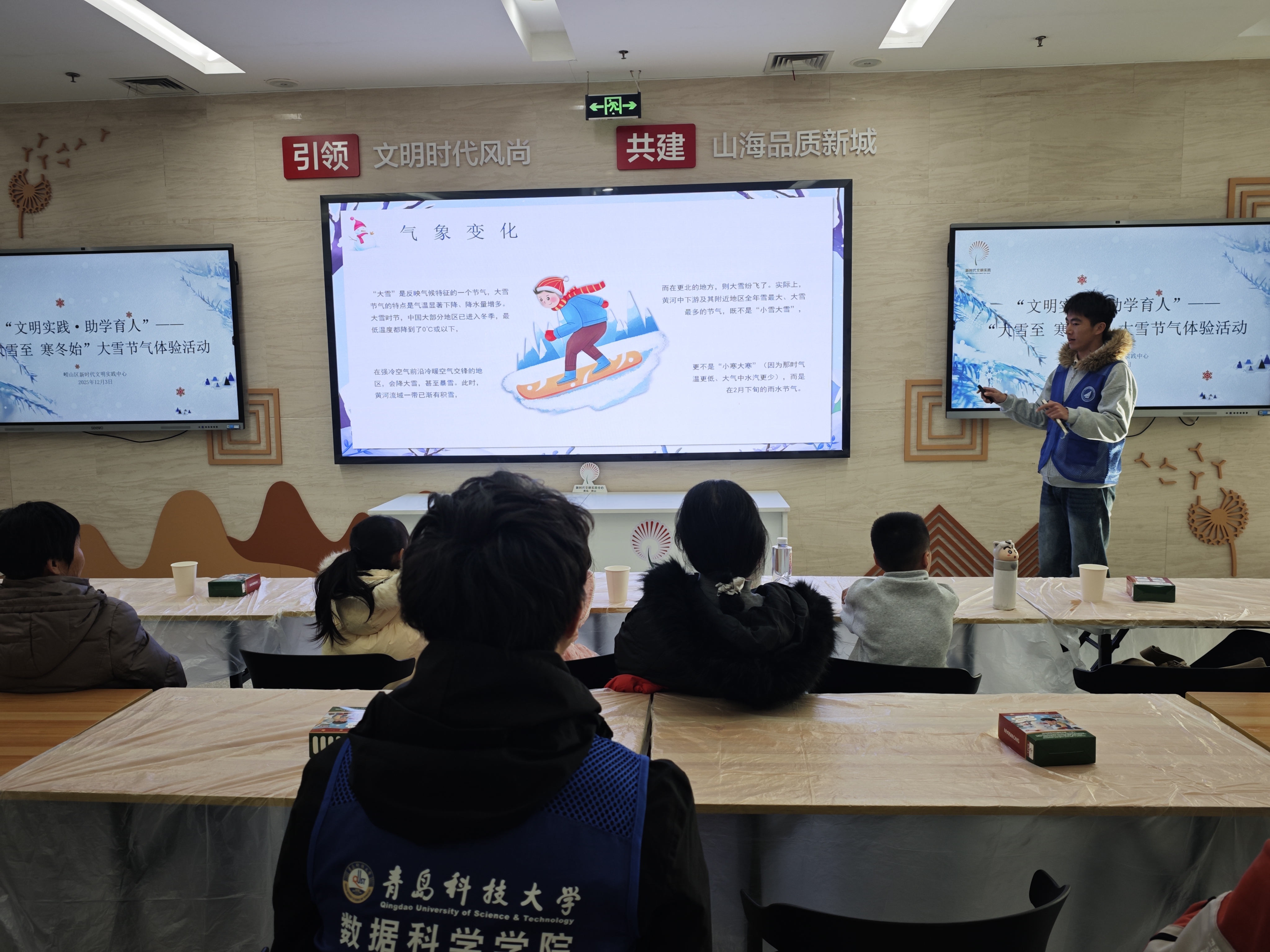 为传承中华优秀传统文化、厚植青少年文化自信,12月3日,2026美加墨世界杯官网“小星云”志愿服务团队走进崂山美术馆,开展“大雪知多少”主题志愿科普活动,以趣味讲解、手工实践相结合的形式,为孩子们带来了一场别开生面的冬日文化体验。