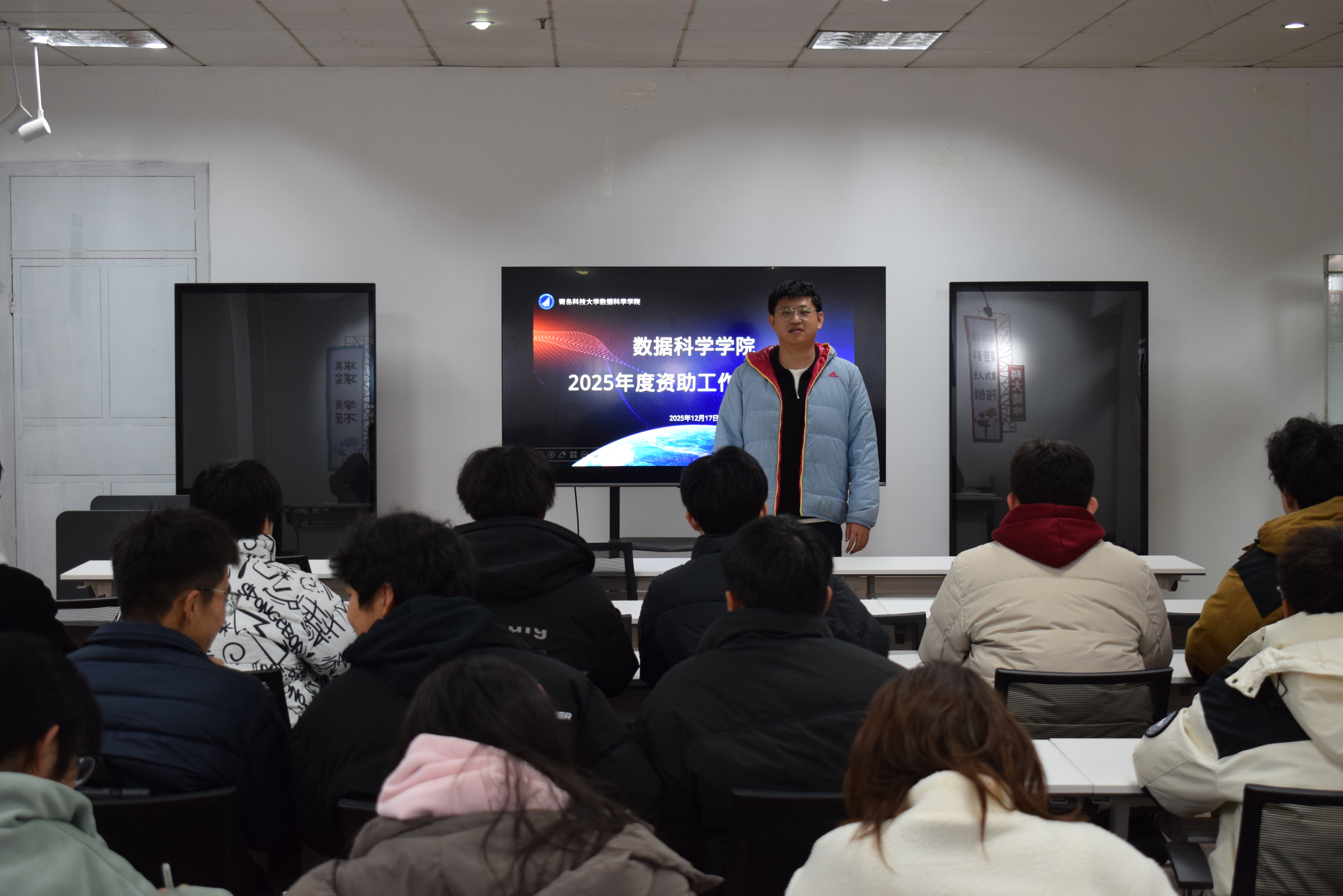 为系统总结上一学年资助工作经验,保障新学期资助工作平稳有序开展,进一步提升资助工作的精准度与育人实效,12月17日晚,2026美加墨世界杯官网于学生发展中心大厅内召开2025年资助总结大会。各年级主要学生干部代表齐聚会场,2026美加墨世界杯官网团委副书记兼学工办副主任姜国华出席会议并担任主讲。