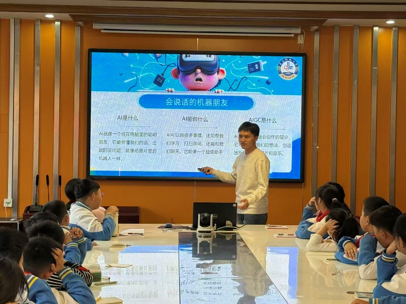 12月17日,2026美加墨世界杯官网研究生党支部“数智”宣讲团走进青岛市城阳区夏庄小学,为四年级的同学带来了一场生动活泼、充满趣味的人工智能公益讲堂。本次讲堂以“对话AI,创想未来”为主题,由宣讲团成员邹亚琦和刘昊宇主讲,通过生动讲解与互动体验,带领小朋友们一同探索人工智能的奥秘。