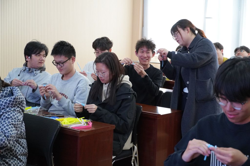 活动伊始,工作人员围绕扭扭棒花环制作技巧展开细致讲解,通过现场示范、步骤拆解等方式,耐心解答同学们提出的各类疑问,引导大家沉浸式感受手工创作的乐趣。活动过程中,同学们专注投入、相互交流探讨,在动手实践中舒缓压力、放松身心。