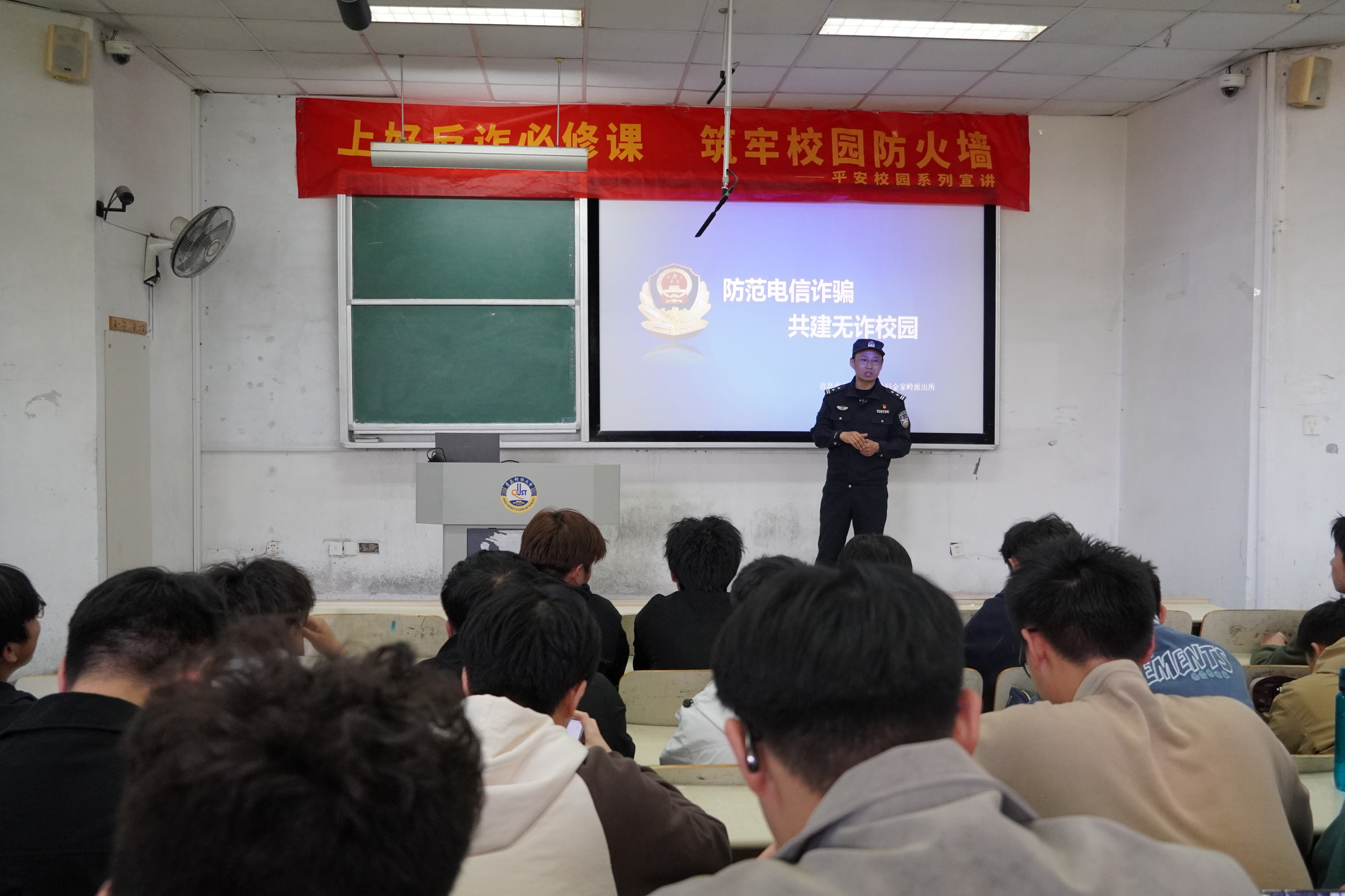 讲座现场,钟连魏结合多年基层反诈办案经验,以真实案例为切入点,详细揭露了电信网络诈骗的隐蔽性、迷惑性和危害性。警官重点指出,大学生群体社会经验不足、防范意识薄弱,是电信网络诈骗的高发受害群体,针对各类骗局,钟连魏逐一拆解作案手法,明确提醒同学们切勿轻信陌生来电、不明链接和虚假承诺,牢记96110反诈劝阻专线,主动向学校、警方求助。