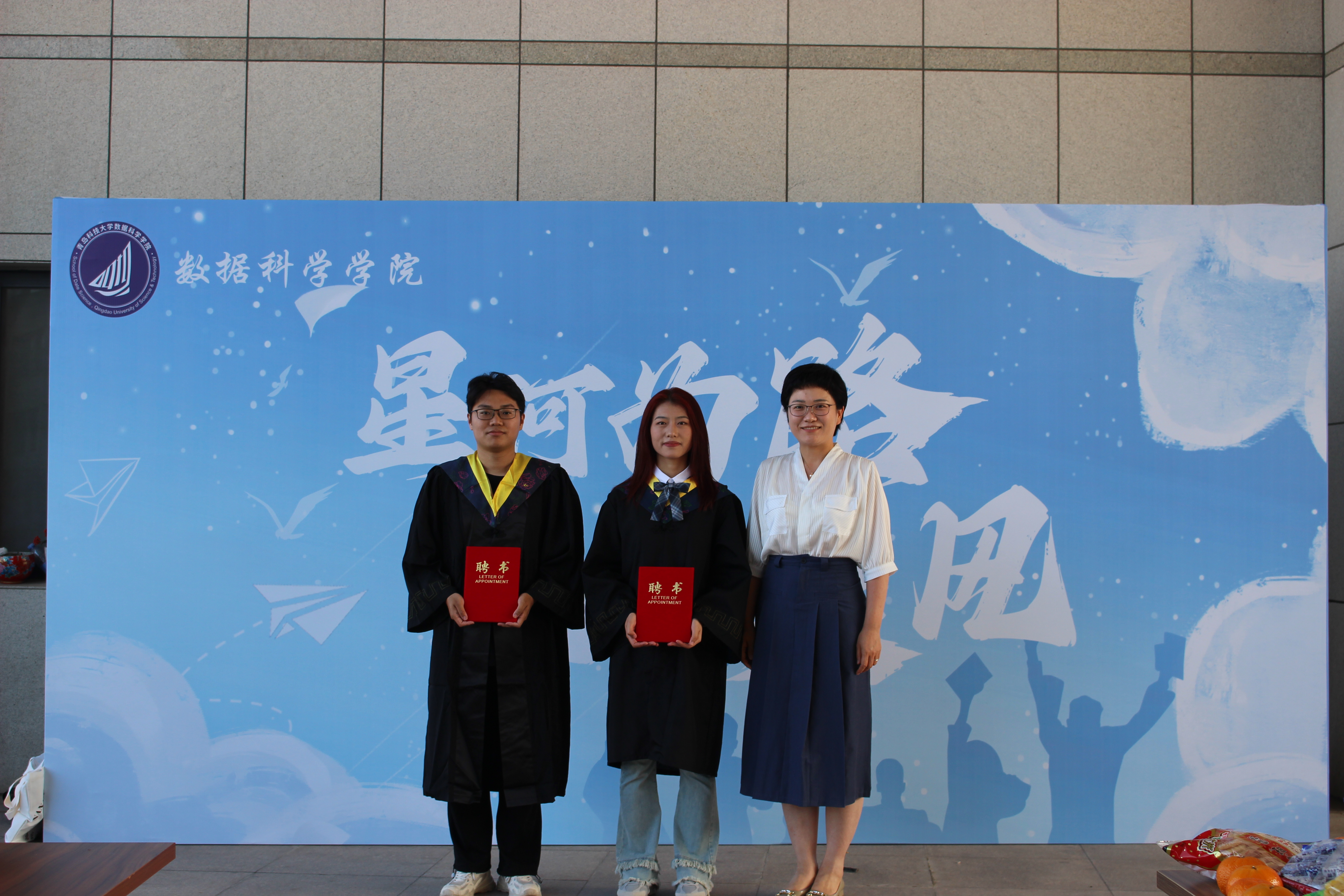 毕业生代表为任课老师、班主任、辅导员赠送纪念品,感谢彼此的相遇,感谢他们的辛勤付出,表达最真挚的祝福。毕业班班主任代表刘金环为毕业生送上寄语,勉励毕业生执着追求理想,牢记勤勉务实,在新的人生旅程中继续勇往直前,拥抱灿烂未来。