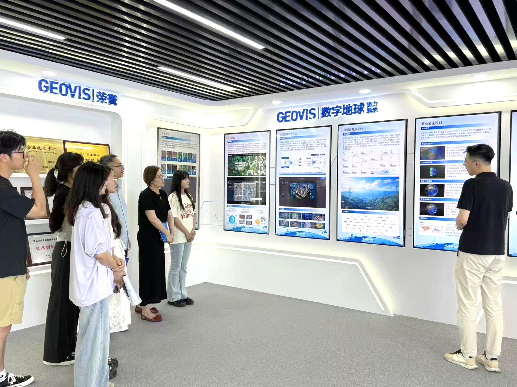 学院一行人参观了企业的GEOVIS 数字地球体验中心、研发中心,了解了中科星图的基本概况、行业定位、发展战略以及行业应用。企业相关负责人与同学们进行座谈交流,详细解答同学们关于职业发展、行业现状、招聘要求、岗位需求等方面的疑惑,为同学们的未来规划提供了宝贵建议。