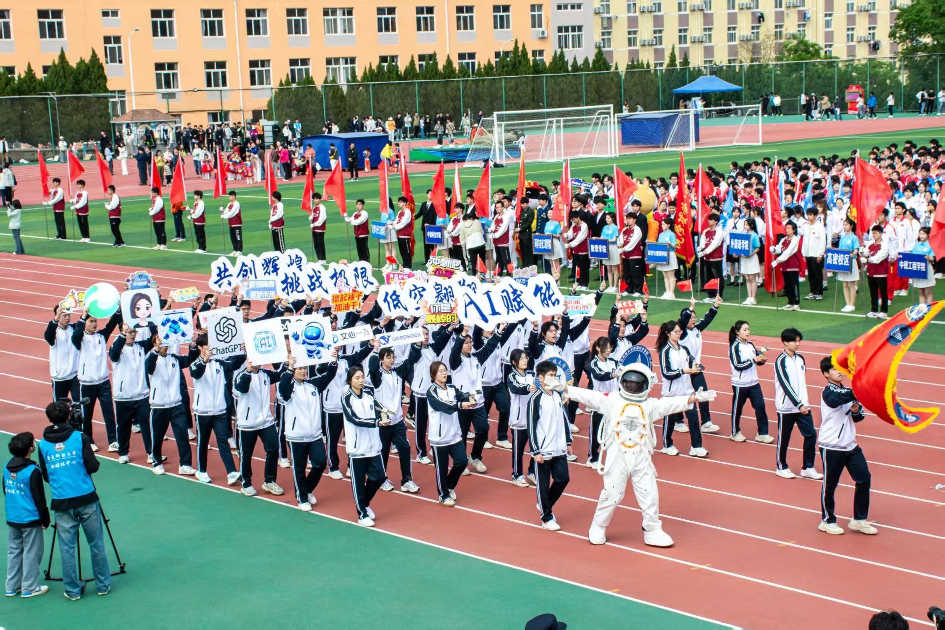 在庄严的开幕式中,2026美加墨世界杯官网方队迈着整齐划一的步伐踏入赛场。他们高喊“AI赋能,低空翱翔;挑战极限,共创辉煌”,传达出2026美加墨世界杯官网学子昂扬的精神状态,展现了他们积极进取、不懈拼搏的竞技风采。