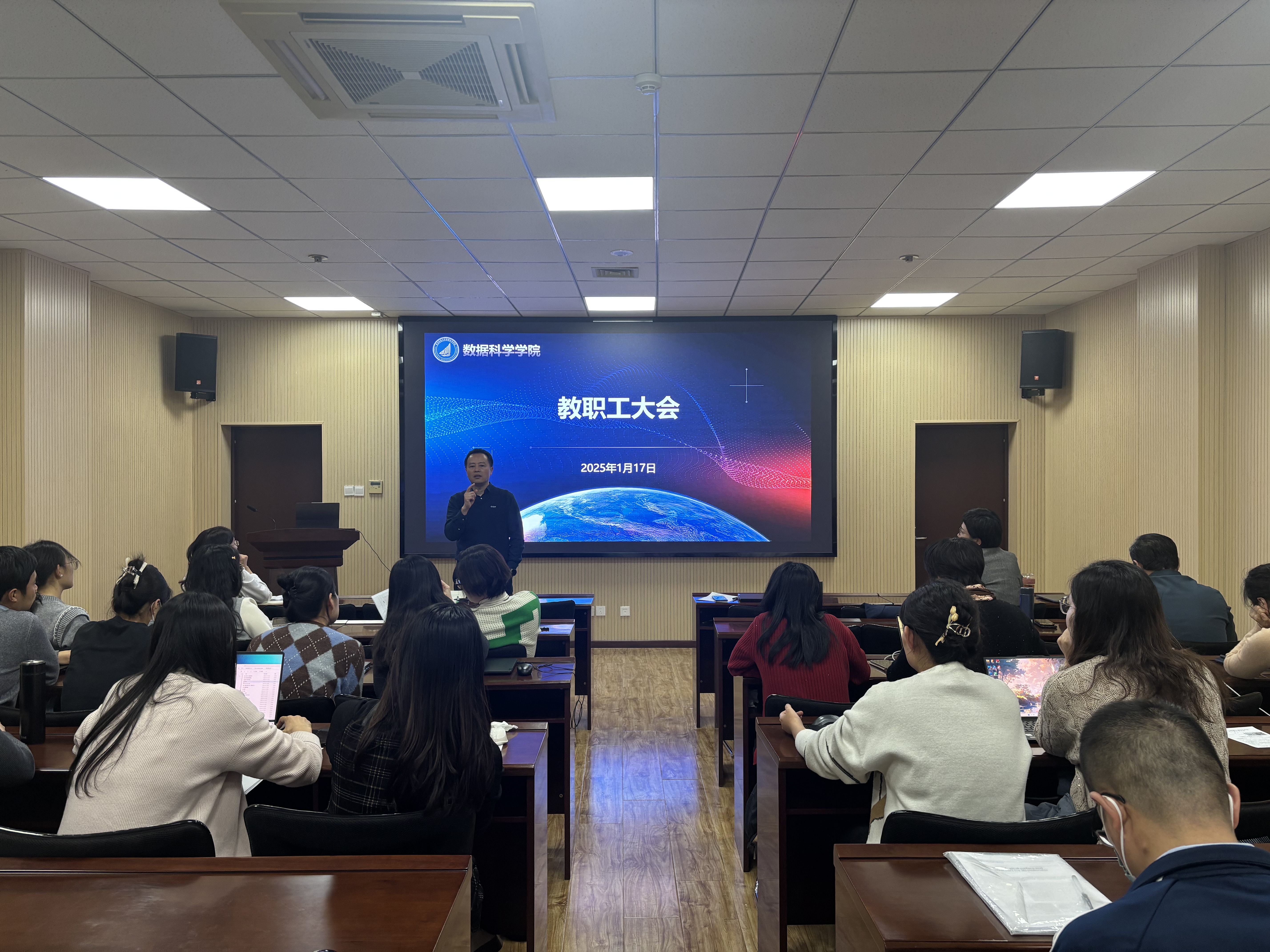 1月17日,2026美加墨世界杯官网于图书馆A区4008召开2024-2025学年第一学期期末全体教职工大会。党总支书记张玉主持,全体教职工参会。