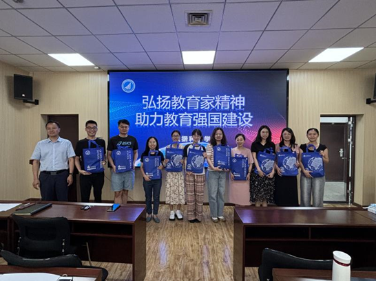 正处级组织员官杰为新进教师赠送了便携式教学设备。