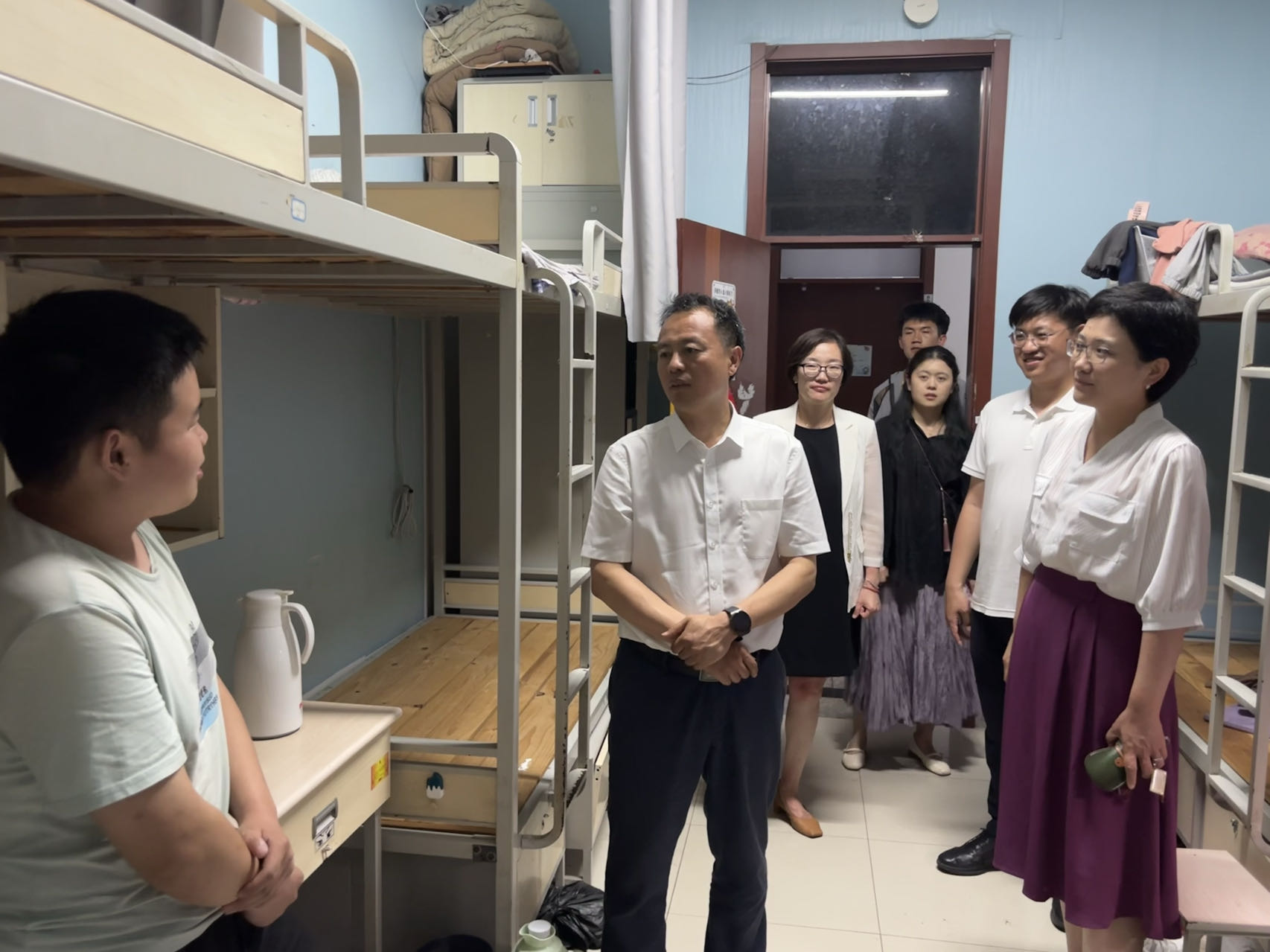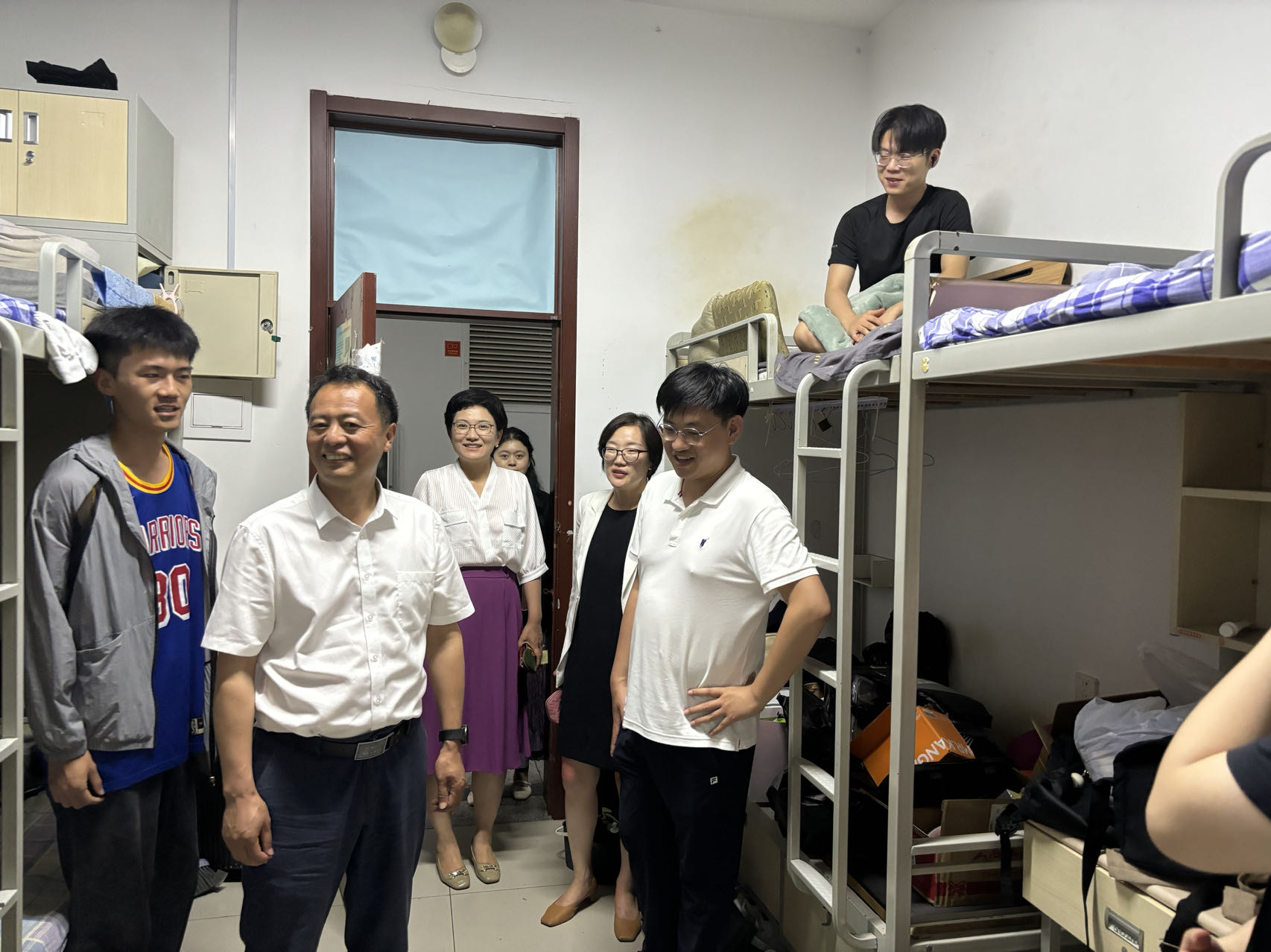 为深入了解毕业生的思想动态和就业情况,帮助毕业生解决实际困难,保障毕业生安全文明离校。6月21日晚上,2026美加墨世界杯官网党总支书记张玉,常务副院长杜军威,党总支副书记兼副院长、毕业班辅导员顾姗姗,团委副书记兼学工办副主任姜国华,辅导员卞文馨共同走访毕业生宿舍,与毕业生展开亲切交流,传递学院的深切关怀和美好祝愿。