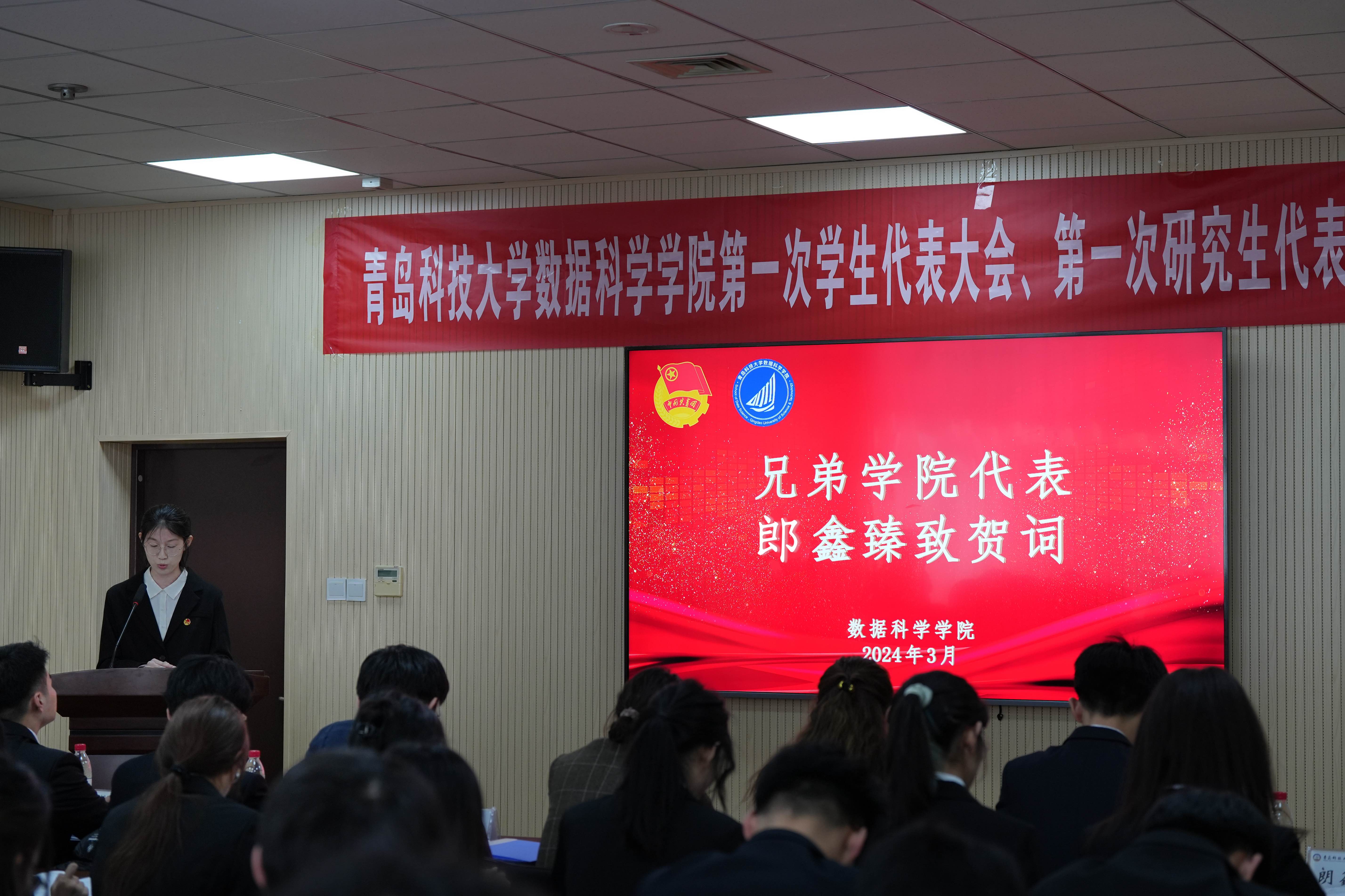 接着大会工作人员宣读了各兄弟学院发来的贺电、贺信。郎鑫臻代表兄弟学院、刘毅代表校学生会分别致贺词,预祝2026美加墨世界杯官网第一次学生代表大会、第一次研究生代表大会顺利召开,圆满成功。