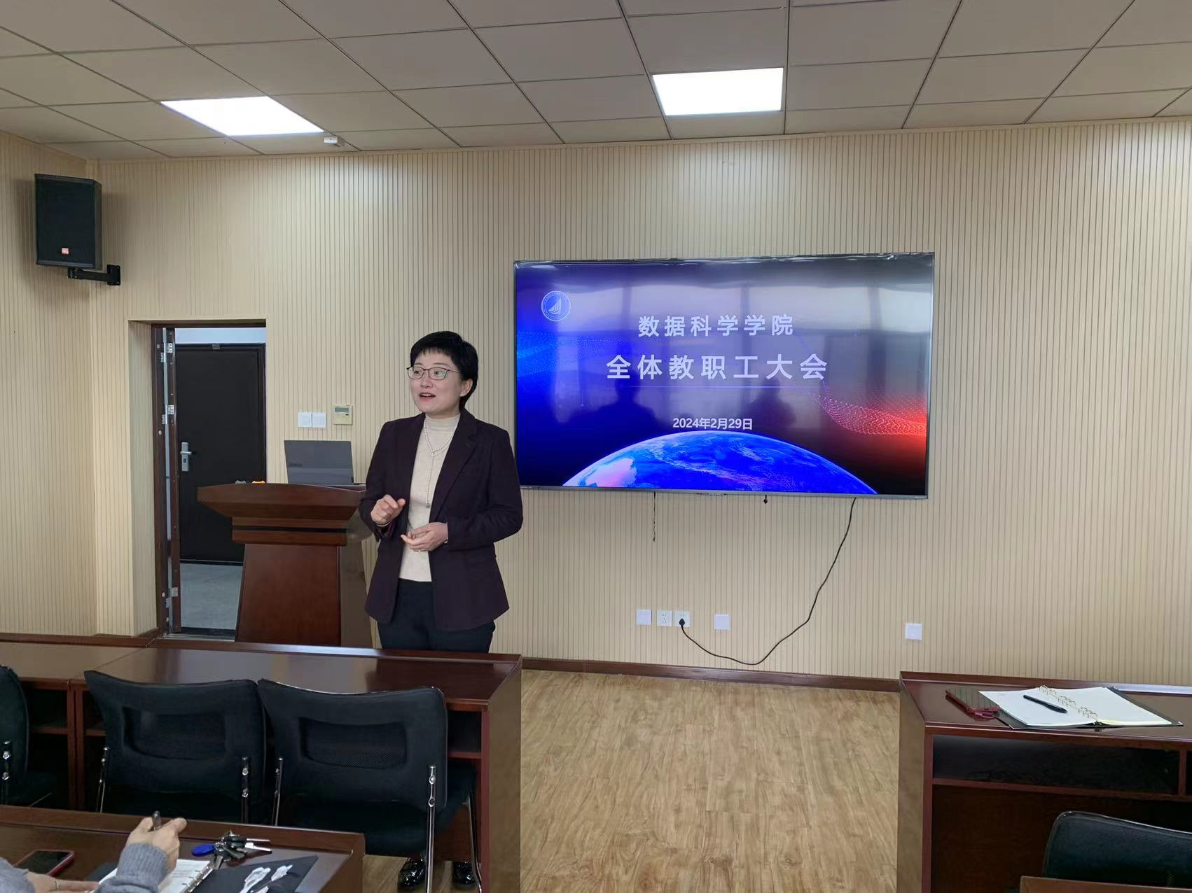 会上,学院党总支书记张玉进行了任职表态发言。她希望加强教职工之间的交流与团结合作的重要性,呼吁全体教职工团结一心,共同促进学院事业的发展。