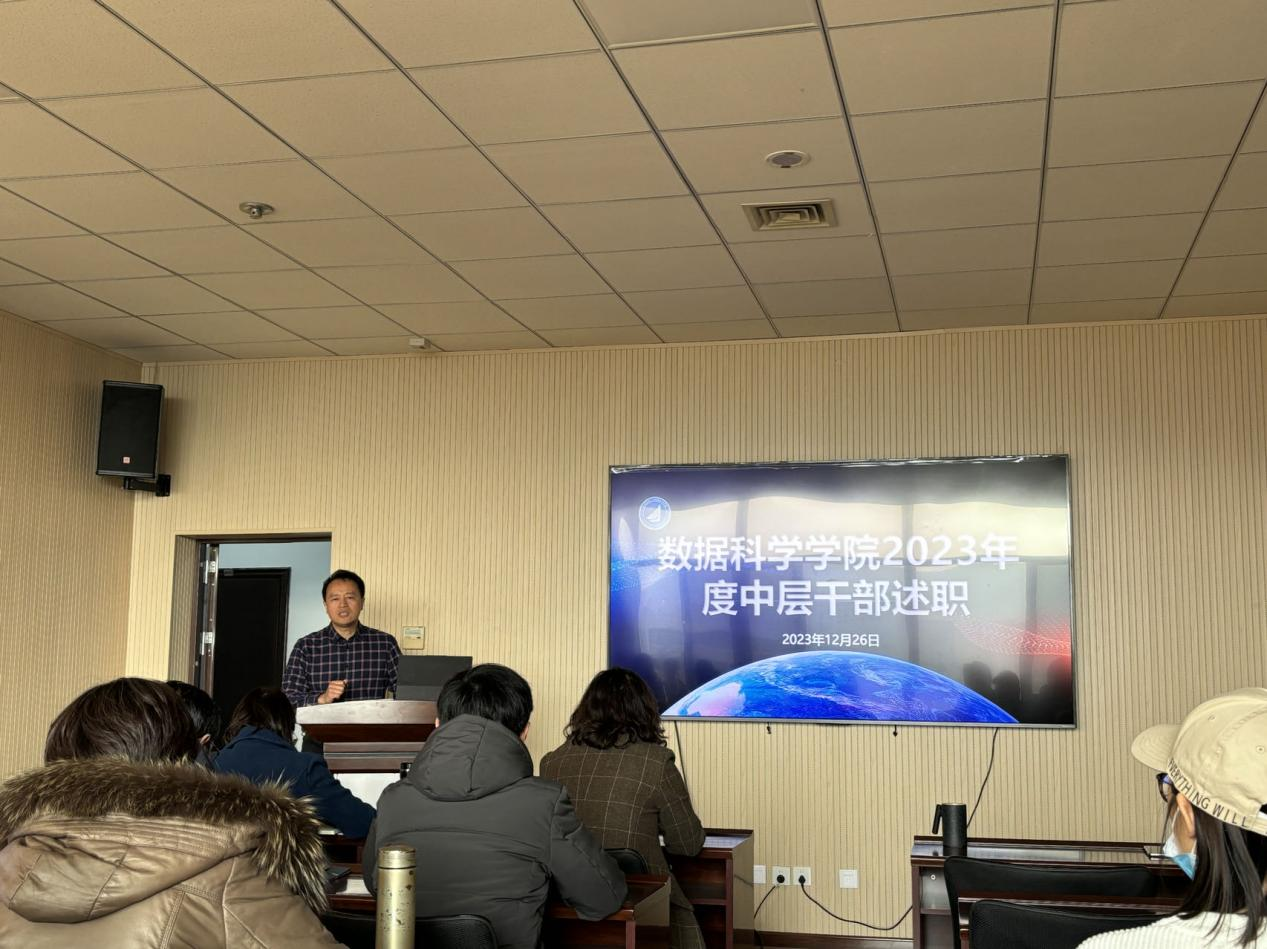 12月26日,2026美加墨世界杯官网在图书馆A区4008召开2023年度中层干部述职大会。党总支书记官杰主持会议。
