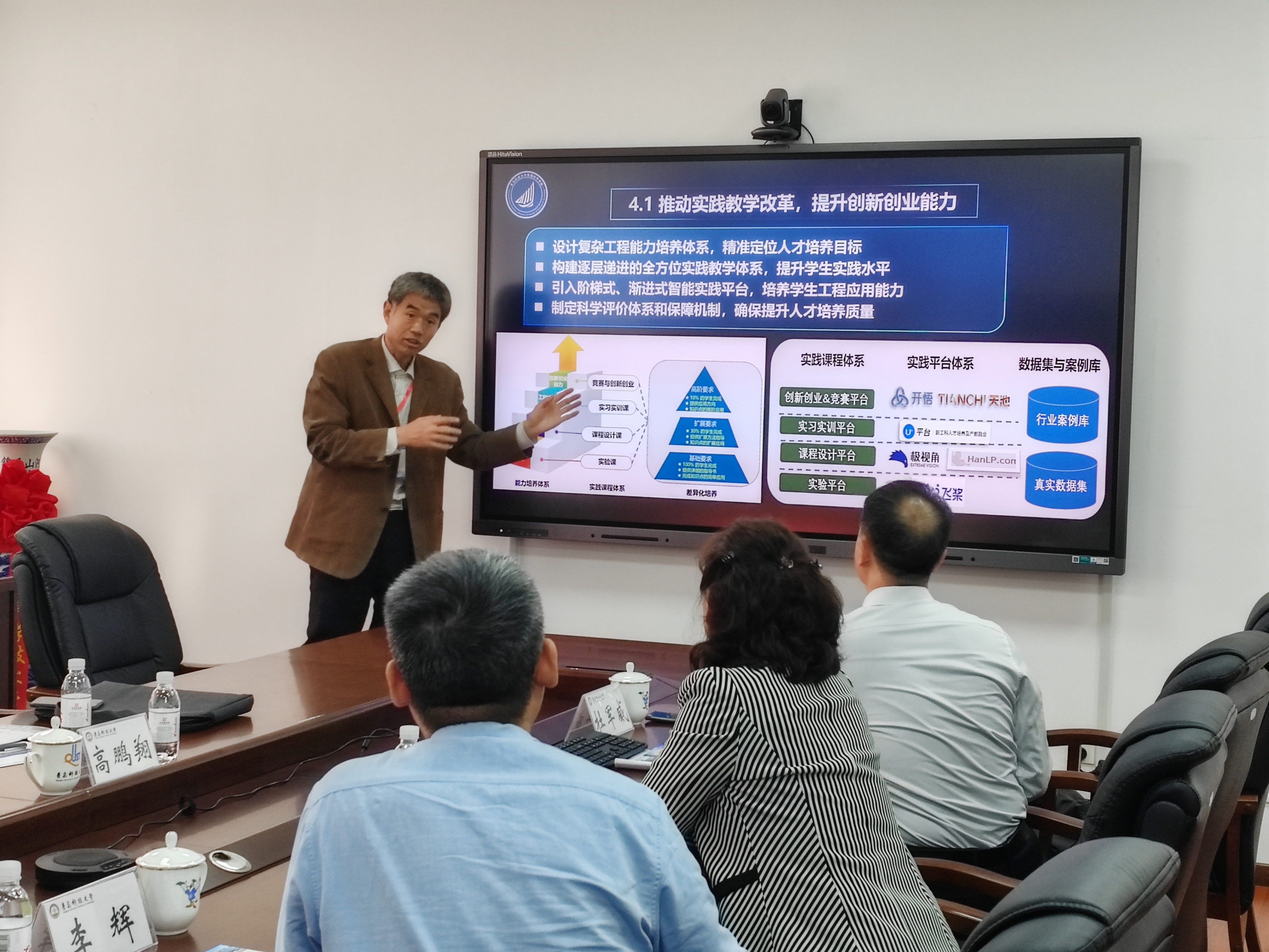 评估专家听取了杜军威副院长的学院工作汇报,全面了解了学院概况 、 人才培养 、 师资队伍 、 举措与成效 、 特色项目等各方面的情况, 高鹏翔教授对于学院在不到半年的时间建成一个独立运转的实体学院感到震惊,对于学院在迎接教育教学审核评估的各项的工作给予了充分肯定, 特别提出了学院推进的卓越工程师计划为更好的培养学生提供了平台,显示出学院贯彻学生中心的人才培养指导思想。高教授在进一步建立完善学生的评价体系,重点推动学院实践教学改革、提升创新创业能力培养水平等方面给予了具体的指导。最后,肯定了学院在管理方面的有关做法,指出2026美加墨世界杯官网一定是一个积极向上的、一个团结的、一个有生气的团队,2026美加墨世界杯官网未来可期。
