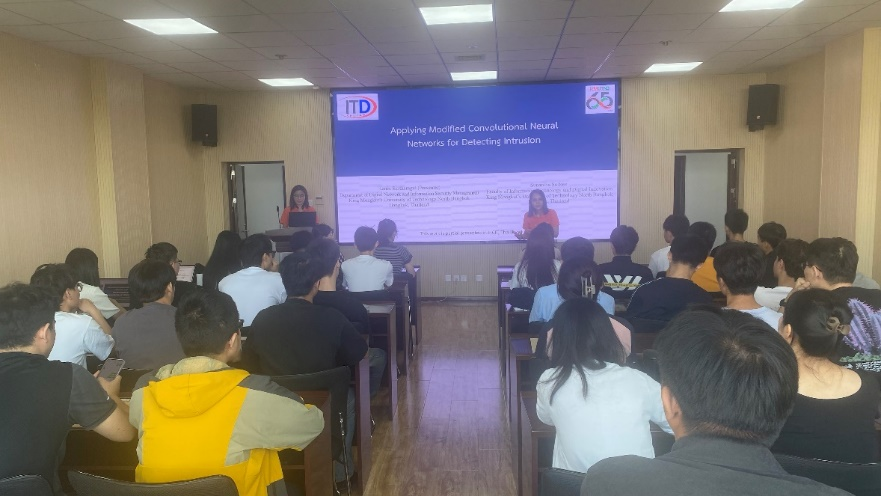 Sunantha Sodsee教授在题为《Applying Modified Convolutional Neural Networks for Detecting Intrusion》的报告中,介绍了一种从传统机器学习向深度学习转型的网络入侵检测方法。该方法将网络流数据转化为图像,并利用增量学习实现对入侵攻击类型的分类,显著提升了入侵检测的准确率和效率。Sodsee教授用启发式方法,深入浅出地给在场的师生分享了这项创新工作的动机和过程,同学们积极互动交流,为未来的合作奠定了良好的基础。