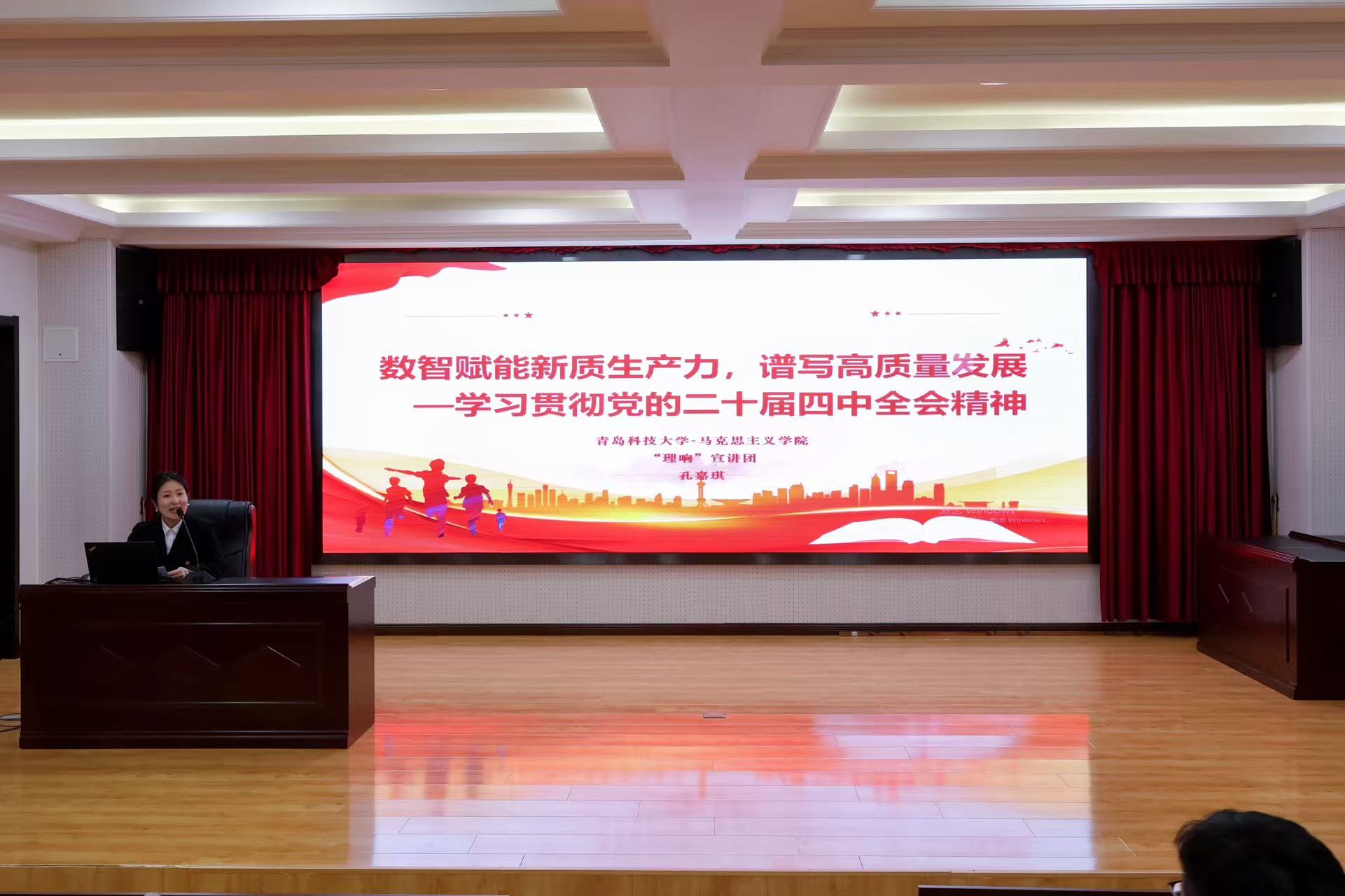 活动伊始,马克思主义学院“理响”宣讲团围绕《数智赋能新质生产力,谱写高质量发展》展开系列宣讲,系统解读了党的二十届四中全会关于数字化与新质生产力的战略部署,强调应加速人工智能等数智技术前沿创新,突破基础理论与关键核心技术,持续优化算力、算法与数据要素供给体系。