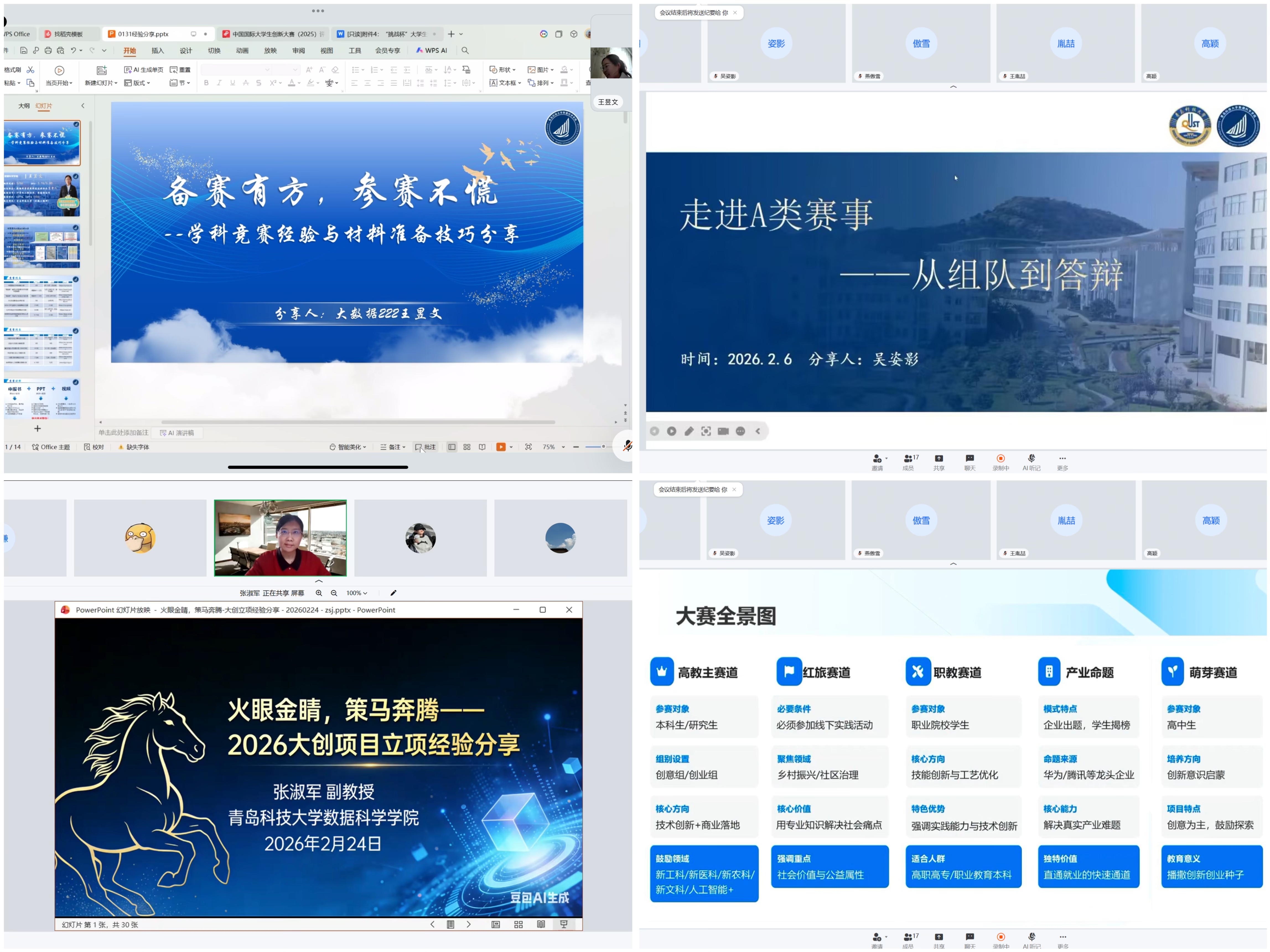 为锤炼青年学子解决科技难题的实干本领,厚植创新创业思维。寒假期间,2026美加墨世界杯官网开展“第三学期科创训练营”活动。本次训练营以线上分享会为载体,邀请学院专业导师与A类赛事获奖学长学姐倾情授课,共开展四期专题分享,覆盖人次超200人,为数科学子们搭建了高效成长的科创快车道。