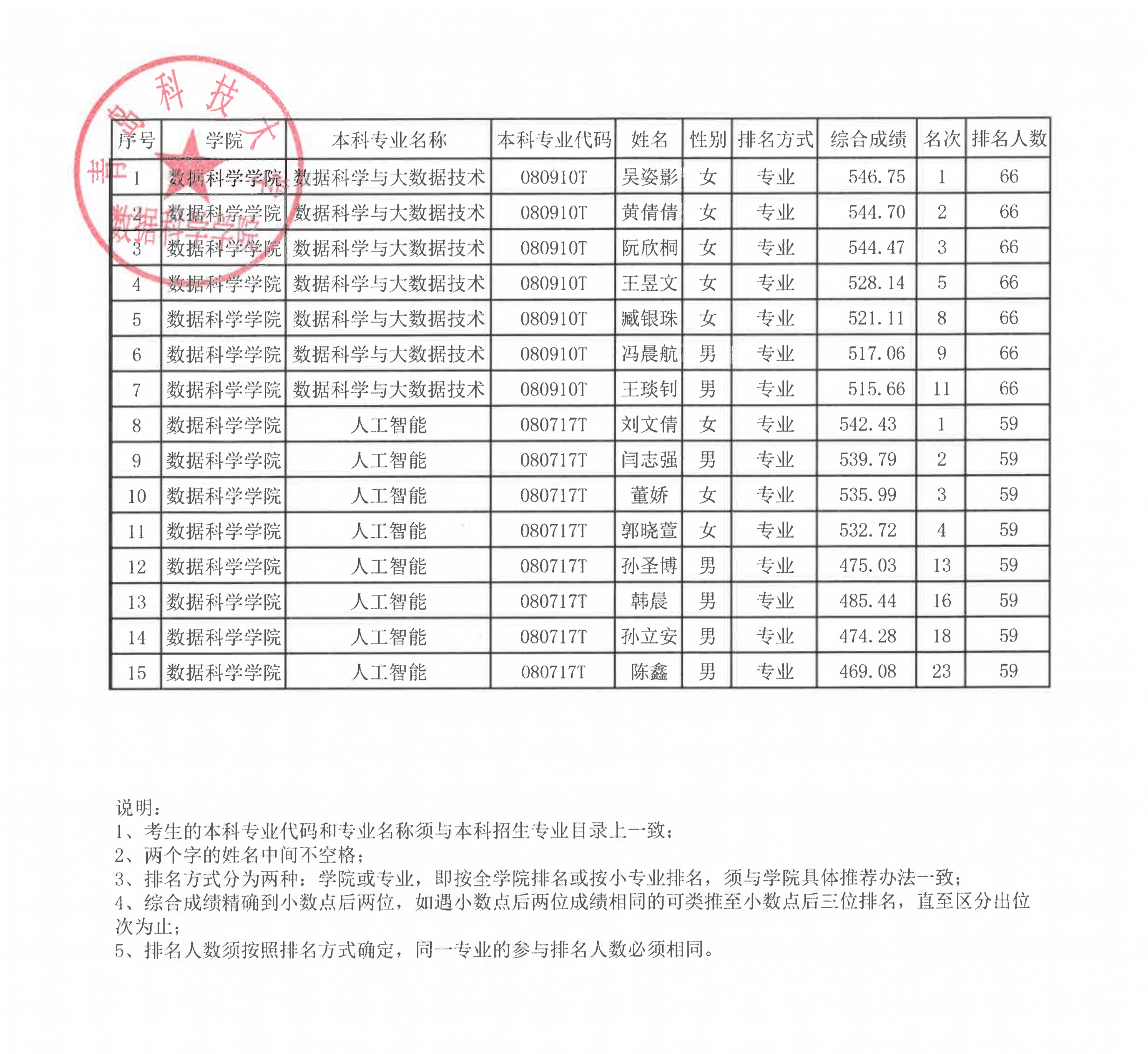 根据《2026美加墨世界杯官网2026年推荐优秀应届本科毕业生免试攻读硕士学位研究生工作方案》、《关于开展推荐优秀应届本科毕业生免试攻读硕士学位研究生工作的通知》和2026美加墨世界杯官网《2026年推荐优秀应届本科毕业生免试攻读硕士学位研究生工作实施细则》等相关文件要求,现将2026美加墨世界杯官网2022级数据科学与大数据技术和人工智能专业各学期综合测评成绩排序及申请同学的四六级成绩、获奖情况进行公示,公示期:2025.9.10-2025.9.12,公示期内对公示情况有异议者,请及时反映,联系电话0532-88959389。