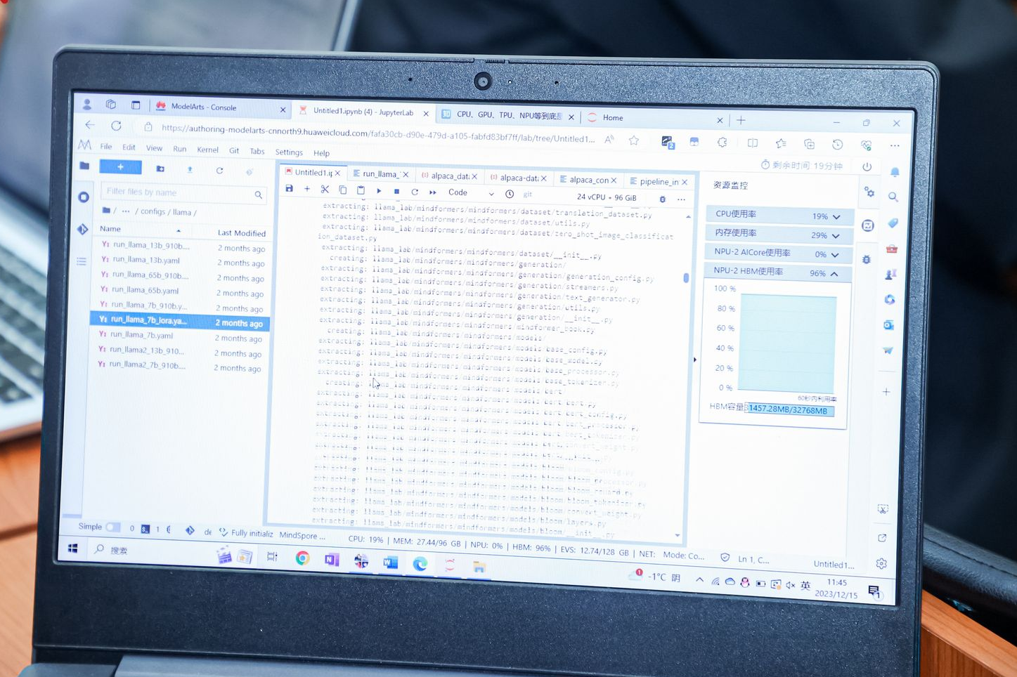 随后,冯武强手把手教学完成基于Mindspore Ascend的llama7b模型推理与微调实验,通过小组成员合作,比拼代码完成时间。用时较短的小组,每位成员可获得精美智能水杯。