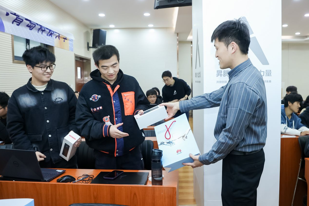 在本环节中同学们积极探讨,华为技术专家和工作人员也耐心地解答了同学们遇到的问题,最终同学们顺利完成了大模型的推理,每位同学都感受了最先进的生成式大语言模型,每一位顺利完成的小组成员都获得了精美智能水杯。