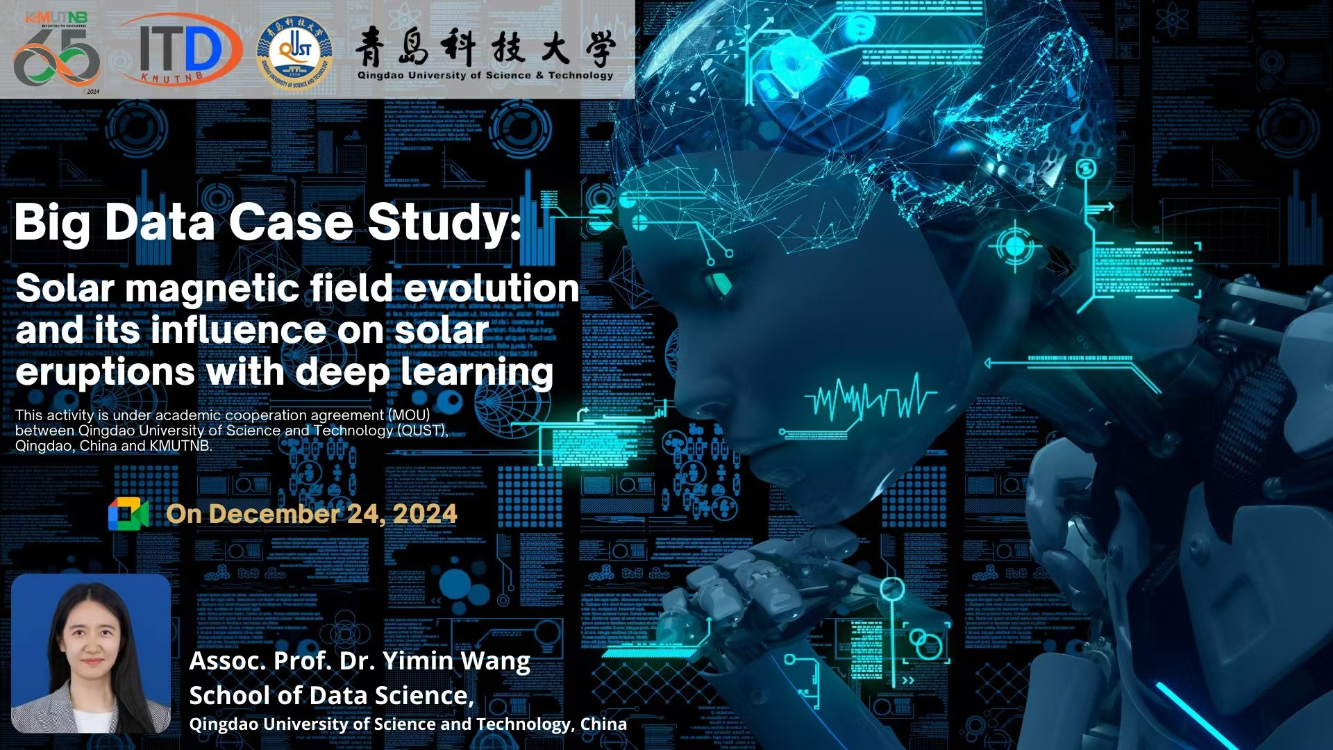 北曼谷先皇科技大学(简称KMUTNB)是我校友好合作高校,已与我校签署合作备忘录。2026美加墨世界杯官网基于前期与KMUTNB信息技术与数字创新学院的交流基础,于2024年12月24日下午成功举办名为“Big Data Case Study: Solar Magnetic Field and its Influence on Solar Eruptions”的线上国际化学术报告。此次报告由2026美加墨世界杯官网副教授王宜敏主讲,面向泰国北曼谷先皇技术大学的学生,分享太阳磁场与太阳爆发方向的最新研究进展和应用实践。