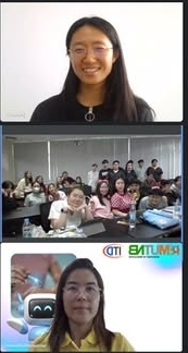 在报告研讨环节,北曼谷先皇技术大学的学生表现出了浓厚的兴趣,积极提问关于太阳爆发的形成条件,在太阳爆发的高峰期耀斑和日冕物质抛射可能对地球空间环境造成的严重影响等问题。王宜敏与学生们进行了热烈的互动交流,活动在友好的氛围中圆满结束。