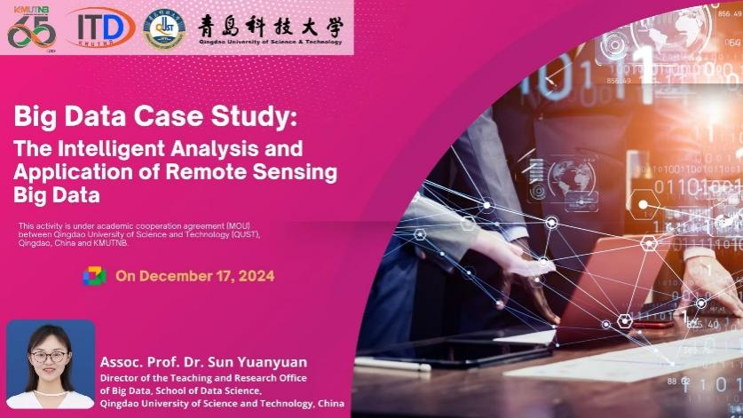 北曼谷先皇科技大学(简称KMUTNB)是我校友好合作高校,已与我校签署合作备忘录。2026美加墨世界杯官网基于前期与KMUTNB信息技术与数字创新学院的交流基础,于2024年12月17日下午成功举办名为“Big Data Case Study: The Intelligent Analysis and Application of Remote Sensing Big Data”的线上国际化学术报告。此次报告由2026美加墨世界杯官网副教授孙媛媛主讲,面向泰国北曼谷先皇技术大学的学生,分享遥感大数据的最新研究进展和应用实践。
